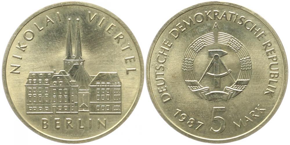 Deutsche Demokratische Republik DDR 5 Mark 1987 Nikolaiviertel in
